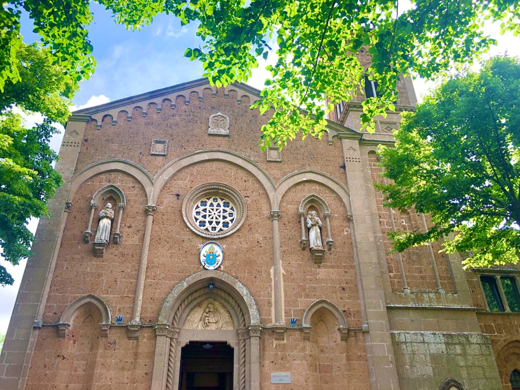 聖なる洞窟から「聖人の道」と名付けられたロディオ修道士が整備した歩道を下っていくと、ロマネスク様式のサンテリア聖堂に着きます。小さな墓地が隣接し、谷の中腹にあるこの教会は、さながら永遠の眠りにつく者たちの子守をしているかのようです。エトルリア時代から聖地だったところにネロ帝がディアナ神殿を建て、その後8〜9世紀の間にベネディクト会修道士たちが神殿跡に教会を建てました。現在の聖堂は、11世紀初頭クリプタと初代聖堂の上に建設されました。
