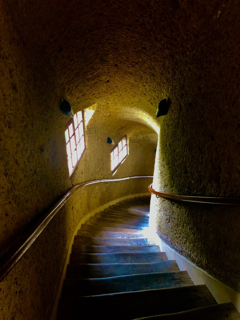 ジュセッペ・アンドレア・ロディオ修道士が、14年間岩を掘ってできた階段です。144段、長さ40m、幅1,5〜2mあります。各ステップには樫の木の板が敷かれており、長年修道士や巡礼者が踏み締めたために表面が歪んでいます。