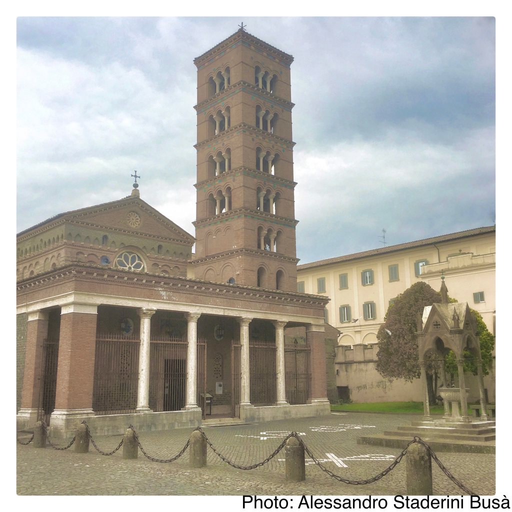 教会内部も、数世紀にわたって何度も修正が加えられたことがひと目でわかります。後陣最上段は、13世紀のフレスコ画による三位一体(父と子と聖霊)と天使たち、預言者イザヤとダヴィデ像が描かれています。その下には、聖霊降臨場面の12〜13世紀のモザイク画、足下は12〜13世紀のコズマーティ様式による大理石の床が施されています。