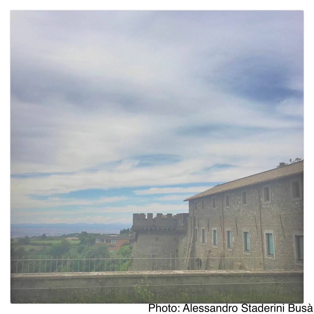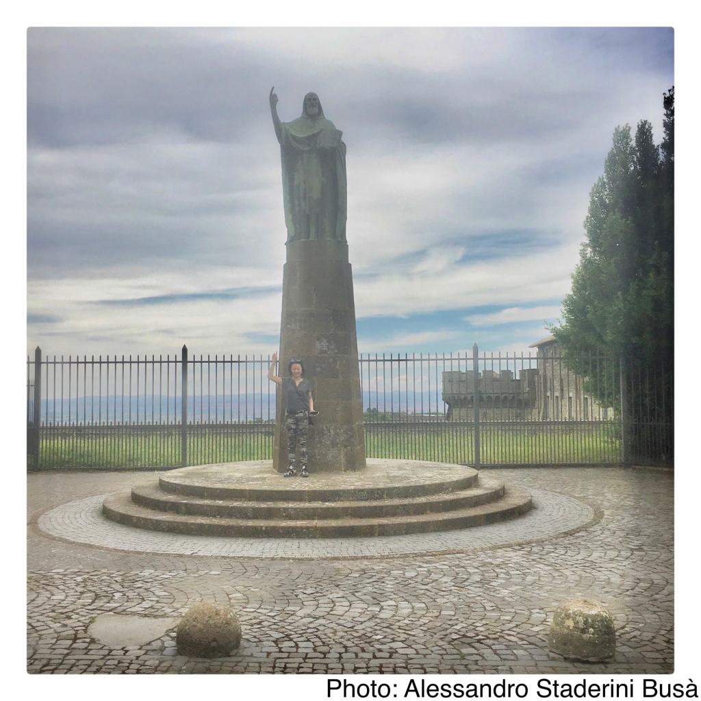 入り口の門を潜ると、この大修道院の創始者である聖ニーロの像が訪問者を迎えてくれます。ここは、1004年に、当時ビザンティン帝国の支配地だったカラブリアから来た聖ニーロと数名の修道士たちによって、ローマ時代の邸宅跡に創建されました。カトリック教会と正教会が大分裂する50年前の創設だったため、カトリック教会に所属しながらもギリシャ式典礼を採用しています。現在、イタリアで数少ないビザンティン式カトリック教会の一つとなっています。
