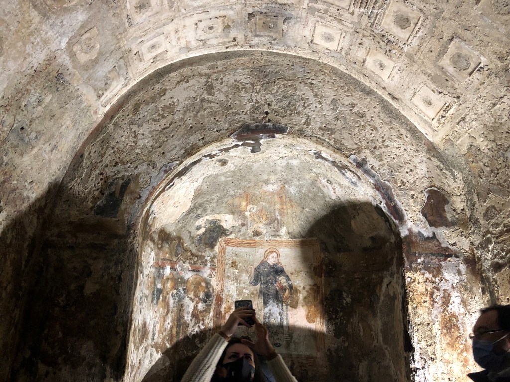 ここも、もともとローマ時代に掘られた地下室を初期キリスト教徒たちが再利用したものですが、未だに何のための地下室だったのかはわかっていません。