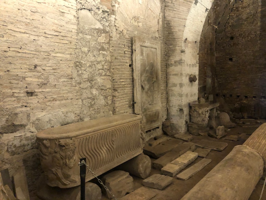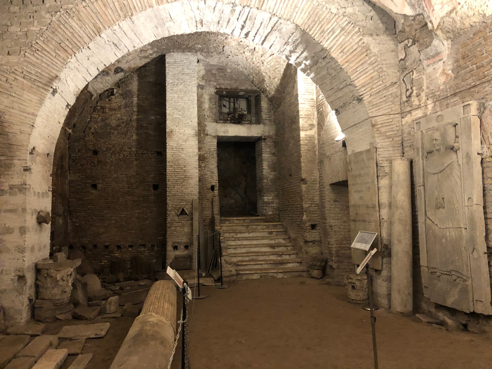ここは、かつて紀元2世紀ごろから初期キリスト教徒たちが集まって祈っていた、エクイツィオという人のプライベイト不動産でした。313年にコンスタンティヌス帝によってキリスト教が公認されると、当時のローマ教皇、シルウェステル1世はここを教会としました。
