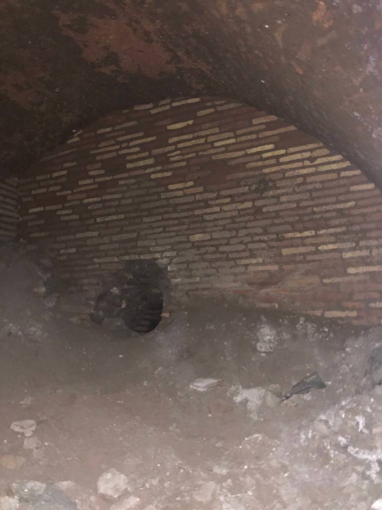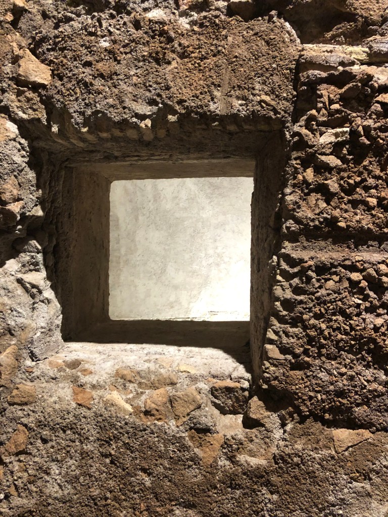 現在立ち入りできる部屋は1部屋だけですが、同じ大きさのほぼ正方形のスペースが3部屋あり、それぞれ天井の真ん中に明り取りか物品の出し入れに使用していたと思われる四角い穴が空いています。